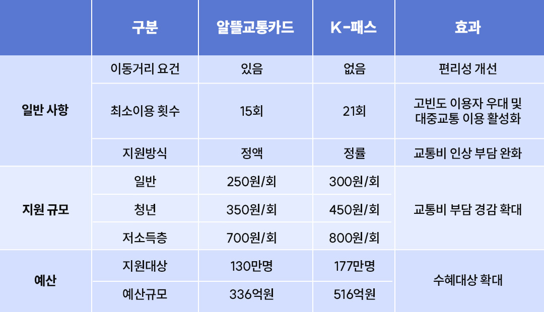 기존 알뜰 교통 카드는 대중교통을 이용하기 위해